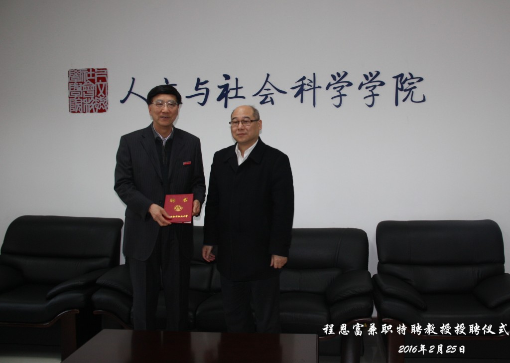2月25日下午,著名经济学家、马克思主义理论家、中国社会科学院学部委员程恩富兼职特聘教授授聘仪式在澳门网投十大信誉平台举行。副校长黄志球出席授聘仪式,人文与社会科学学部常务副主任王岩、学院党委书记张启钱及部分师生参加了授聘仪式暨学术交流会。平旭院长主持授聘仪式,黄志球副校长为程恩富教授颁发聘书并佩戴校徽。