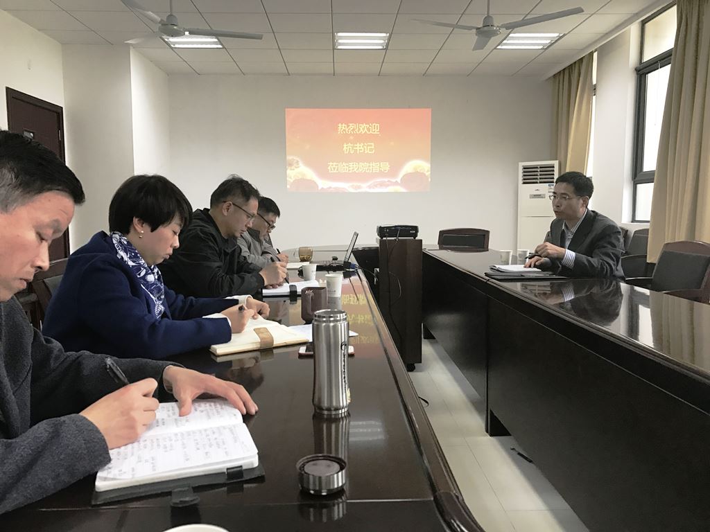 杭育新书记认真听取了汇报,询问了学院发展所面临的问题,在肯定马院相关成绩的同时,提出了诸多指导性意见。杭书记指出,当前党和国家对高校思政工作的重视,为马院提供了宝贵的发展机遇,学院要有强烈的机遇意识,积极谋划,搭上这班发展的快车;要坚持马院姓“马”,教师要具有深厚的理论功底和优秀的教学艺术,要让学生愿意听、喜欢听、听得进,不断提升育人效果;要加强学院内涵建设,修炼内功,在平台建设、师资队伍建设、自编教材建设等方面找准发力点,积极作为,增强办学实力;要拓宽办学思路,积极争取各方支持,加强地方和行业服务,扩大学科影响力和美誉度,汇聚办学资源;要团结和依靠师生推进学院各项改革措施,充分调动和发挥教职工积极性,为教师潜心教学科研创造条件,营造积极进取、务实向上的发展氛围。