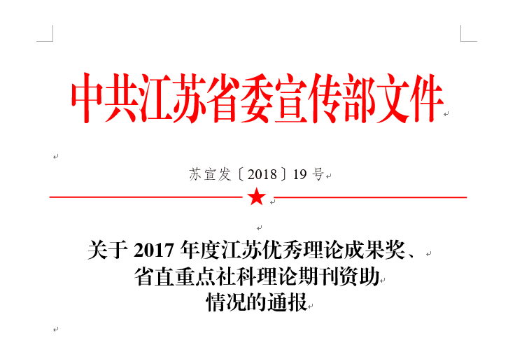 近日,江苏省委宣传部公布了2017年度江苏优秀理论成果奖及省直重点社科理论期刊资助评选结果。经组织申报、评议和审核,十大信誉官网四位教师荣获2017年度江苏优秀理论成果奖。