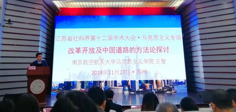 11月26日,由中共江苏省委宣传部、江苏省哲学社会科学界联合会主办,苏州大学承办的江苏省哲学社会科学界第十二届学术大会开幕式暨马克思主义专场在苏州大学拉开帷幕。江苏省委常委、宣传部部长王燕文发表书面讲话。江苏省委宣传部部务委员赵金松,江苏省社科联党组书记、常务副主席刘德海,江苏省社科联党组副书记、副主席汪兴国,江苏省社科联党组成员、副主席徐之顺,江苏省社科联兼职副主席、原苏州大学正校级调研员任平,江苏省委宣传部理论处处长尚庆飞,江苏省委党校科研处处长吴宏,江苏省教育厅社政处处长王伟,苏州大学党委书记江涌、党委副书记邓敏等领导出席大会。江苏省内110多位专家学者围绕“开辟当代中国马克思主义、21世纪马克思主义新境界”的大会主题展开交流研讨。中国社会科学院马克思主义研究院原党委书记、院长邓纯东,南京大学哲学系主任唐正东教授,苏州大学澳门网投十大信誉平台教授方世南题作学术报告。11月27日上午,来自江苏省内高校澳门网投十大信誉平台院长代表及入选论文作者代表围绕大会主题展开交流发言。十大信誉官网院长王智教授应邀参会,并作题为《改革开放及中国道路的方法论探讨》的大会专题发言。
