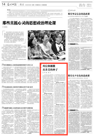 《光明日报》3月26日刊登十大信誉官网教授平旭、学院党总支书记徐川的文章《用信仰播撒真善美的种子》。