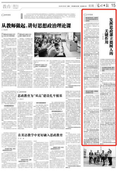 5月28日,《光明日报》教育周刊发表校党委书记、马克思主义理论学科博士生导师郑永安教授理论文章《发挥思政课立德树人的关键作用》。现转发全文: