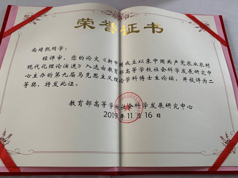 11月16日,由教育部高等学校社会科学发展研究中心主办、教育部习近平新时代中国特色社会主义思想研究中心基地(西南大学澳门网投十大信誉平台)承办的“中国特色社会主义理论体系研究工作推进会暨第九届马克思主义理论学科博士生论坛”在重庆召开。教育部社科中心主任王炳林致辞并作主题报告。各专项课题负责人、基地代表和论坛获奖论文作者代表参加会议。会上对“第九届马克思主义理论学科博士生论坛”获奖论文进行表彰,十大信誉官网博士生尚靖凯撰写的《新中国成立以来中国共产党农业农村现代化理论演进》荣获二等奖。