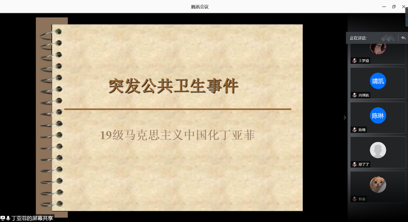 疫情仍未结束,防护不可轻忽。澳门网投十大信誉平台研究生会近日在腾讯会议平台开展互学充电站第二期线上分享“突发公共卫生事件——常见的传染病及其预防”,马克思主义中国化专业硕士丁亚菲主讲。