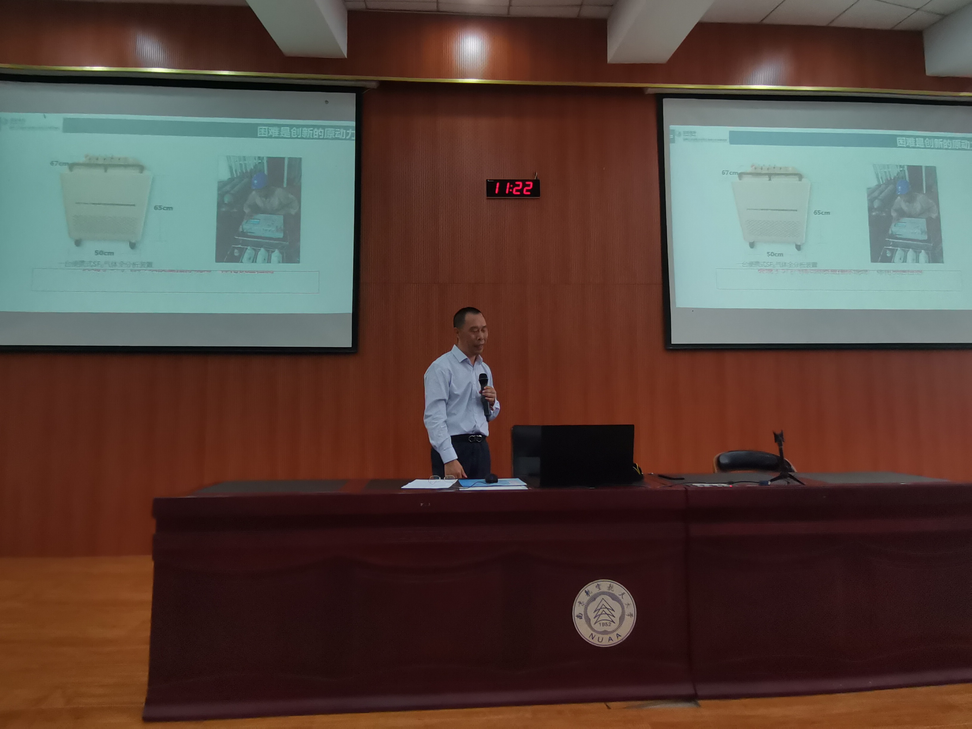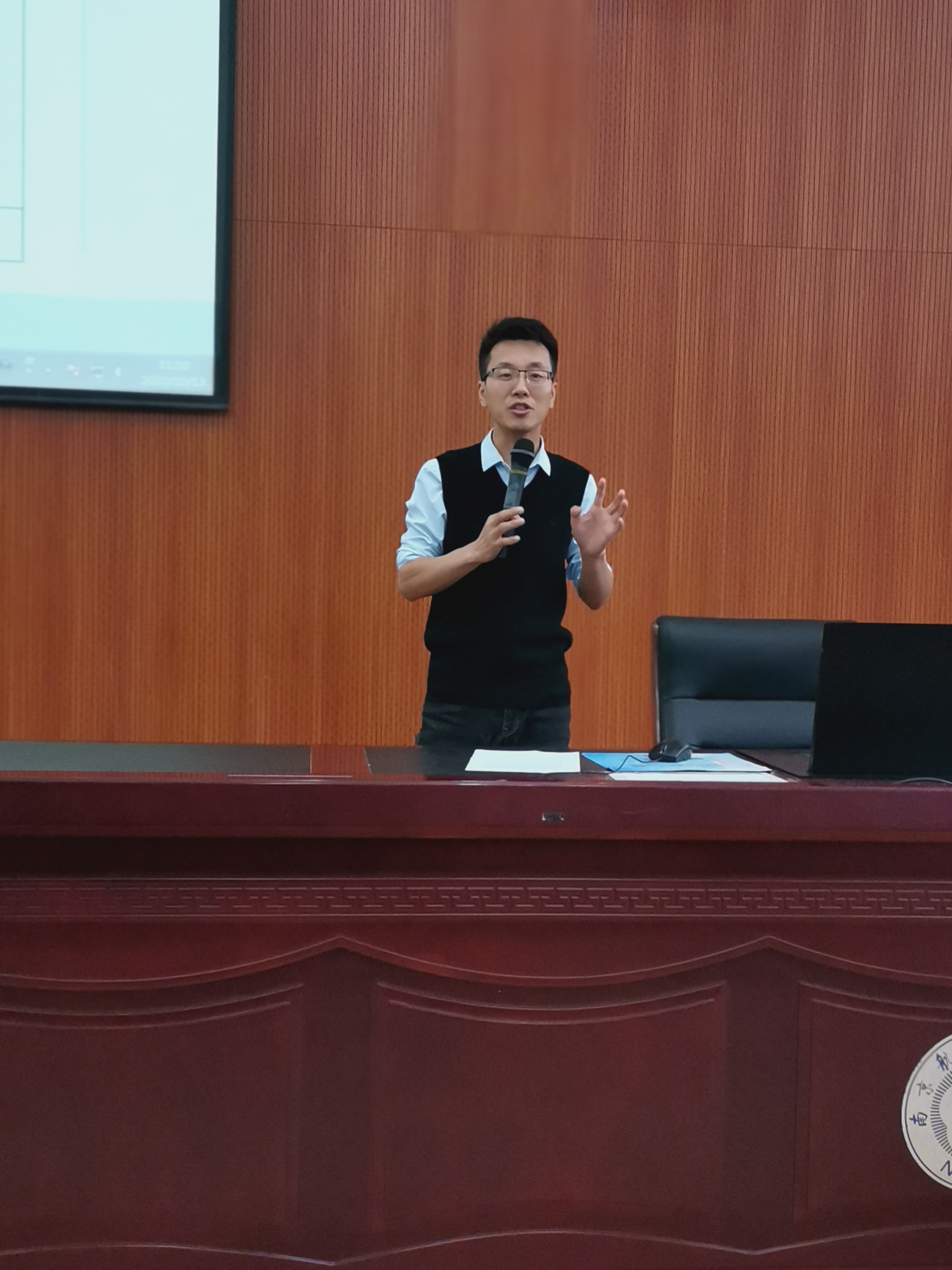 课堂上,朱洪斌用“积微成著”开启了大家对成功的思考。他从自己的成长经历出发,娓娓道来,启迪青年学生只要对工作永不满足、对信念永不放弃、对专业日积月累,终能获得一番成就、现实自我价值。朱老师生动讲解了他在工作中不断寻找自我、成长成才的故事。比如,历时25年解决一个重要问题、历经4年科研攻关仍告失败而不气馁、因风寒感冒时服用双黄连口服液获得新灵感从而研发成功,等等。他不断积累学习、不满现状、永不放弃,终于发明了行业内一个重要的检测方法,最终站上国家科技进步奖颁奖台,并获得国家科技技工奖。通过信手拈来的切身故事和体会,朱老师证明了:困难是创新的原动力,一次次的挫折将会为下一次的成功研发奠定基础。