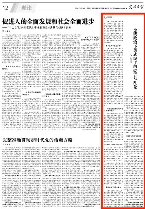 10月16日,《光明日报》第12版刊发十大信誉官网硕士生导师、靳晓霞副教授的文章《金钱政治下美式民主的谎言与乱象》,现将全文转发如下: