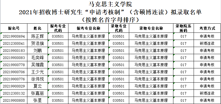 澳门网投十大信誉平台2021年招收博士研究生“申请考核制”(含硕博连读)拟录取名单