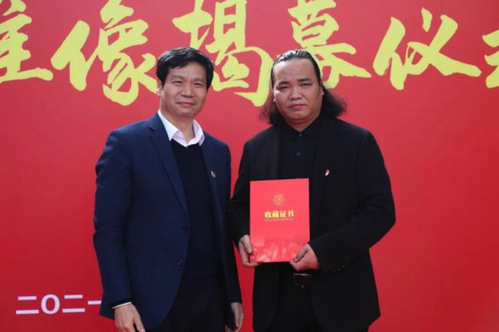 雕像设计师尹悟铭分享了雕像创作过程中的思考和感悟。校党委书记郑永安为尹悟铭颁发了《收藏证书》。教师代表澳门网投十大信誉平台徐军教授、学生代表“青马工程”丁文浩同学分别发言。