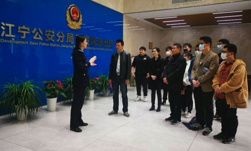 首先,派出所许秋洁中队长带领南航师生参观了开发区派出所综合指挥室和开发区派出所胜太智能安防社区。参观结束后,与会同志们围绕党建工作进行了座谈。吴正武所长介绍了派出所的有关情况,指出一个共产党员就是一个战斗堡垒,党建工作对于提升民警的党性认识至关重要。陈红桂副书记介绍了南航马院的特色党建工作,指出警校结对共建是理论与实践相结合的具体举措,有利于丰富师生的课外实践活动。