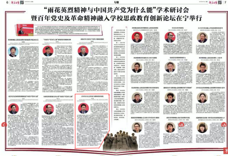 4月27日,新华日报第6-7版“‘雨花英烈精神与中国共产党为什么能’学术研讨会暨百年党史及革命精神融入学校思政教育创新论坛在宁举行”专题刊登了十大信誉官网院长、博士生导师王智教授的发言《百年伟大社会革命与精神谱系构筑》,现将全文转发如下: