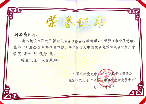 十大信誉官网院长王智教授应邀参会,并担任博士生演讲比赛评委;马克思主义理论学科2020级博士生刘志亮论文入围并受邀参会,荣获博士组优秀论文奖。