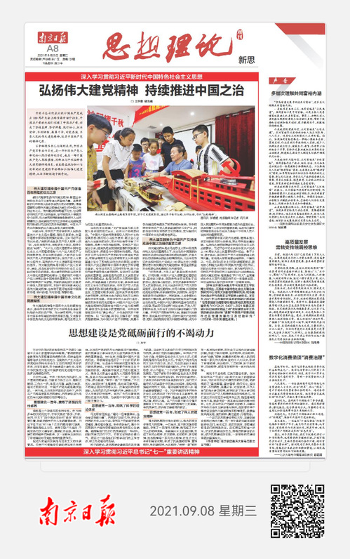 9月8日,《南京日报》“思想理论”版刊登十大信誉官网正科级组织员万千老师的文章《思想建设是党砥砺前行的不竭动力》,现将全文转发如下: