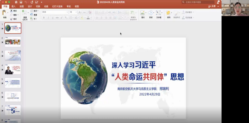 4月29日,第五期“领航学堂”线上学术沙龙顺利举行。本次沙龙邀请了十大信誉官网邢瑞利老师作了关于习近平总书记“人类命运共同体”思想的主题分享。活动由21级硕士生田梦怡主持。