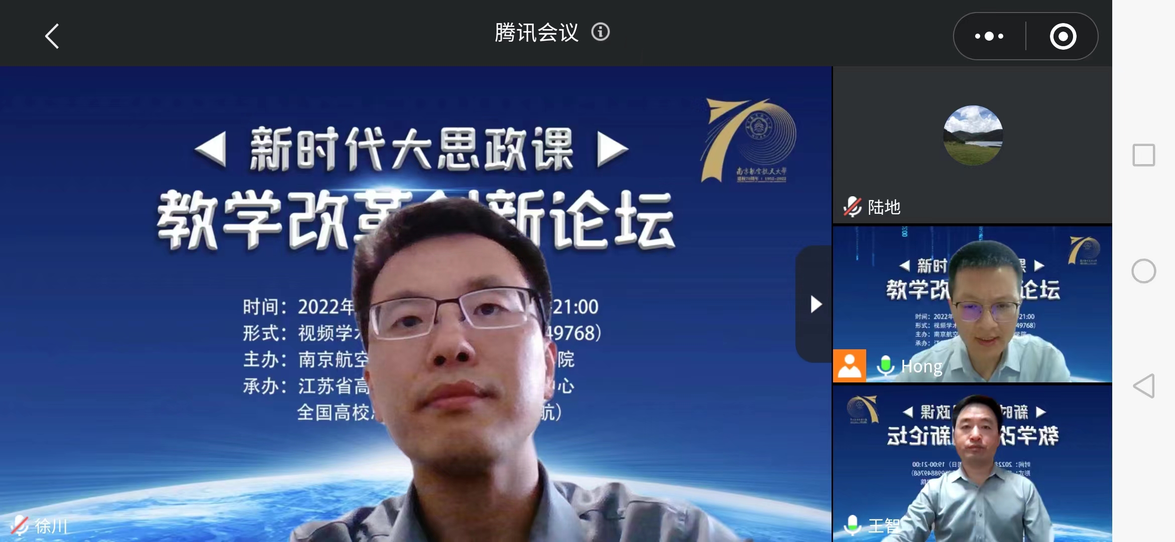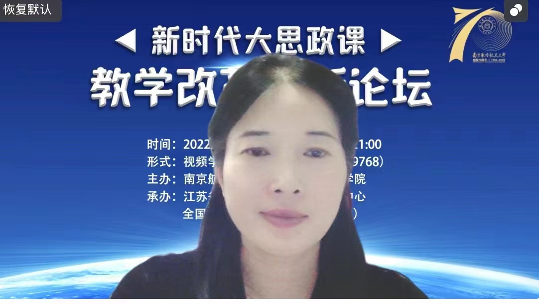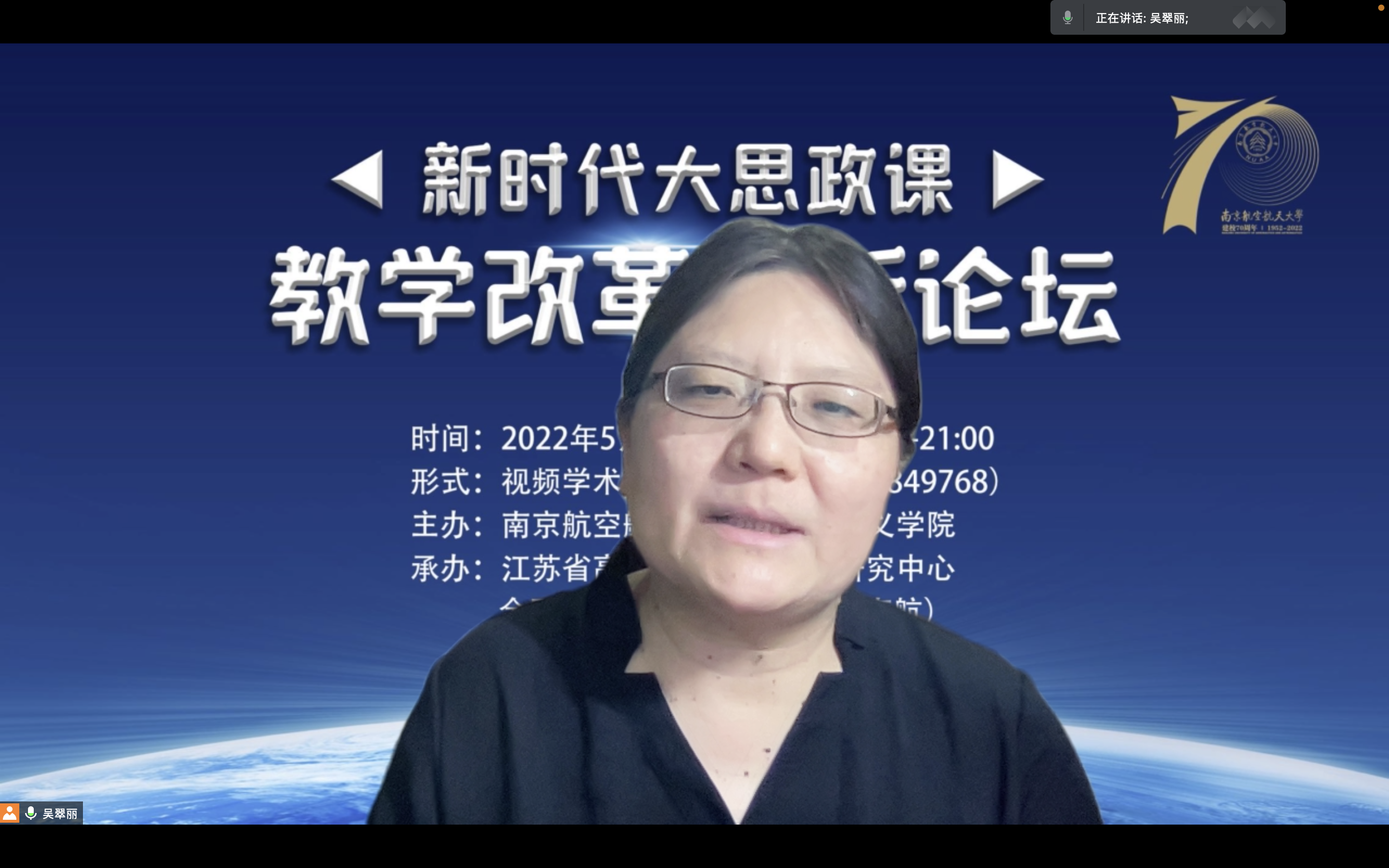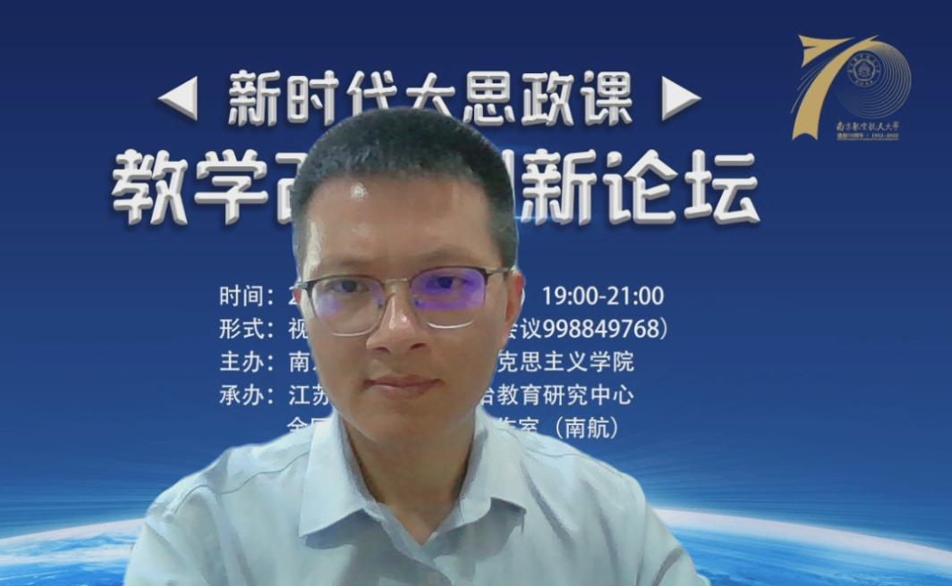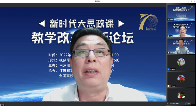 2022年5月22日,由澳门网投十大信誉平台、江苏省高校思想政治教育研究中心、全国高校思政名师工作室(南航)主办的新时代大思政课教学改革创新论坛在十大信誉官网召开。来自南京大学、南京师范大学、苏州大学、河海大学、南京农业大学、江南大学、南京艺术学院等多所高校的专家学者,以线上方式参加了本次论坛。