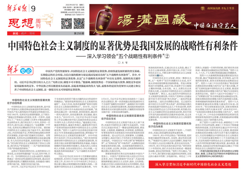6月7日,《新华日报》第9版“思想周刊”栏目刊登了十大信誉官网王智教授的理论文章《中国特色社会主义制度的显著优势是我国发展的战略性有利条件 ——深入学习领会“五个战略性有利条件”② 》,现将全文转发如下: