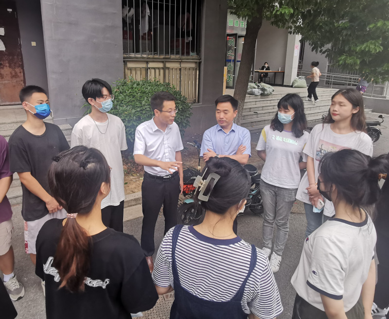 在新生报到后,院领导班子一行走进学生宿舍,与新生展开亲切交流,关怀新生生活情况,建议同学们经常在校园中散散步,尽早熟悉校园学习生活环境,同时勉励新同学在求学路上志存高远,开拓进取,勇做走在时代前列的奋进者、开拓者、奉献者。