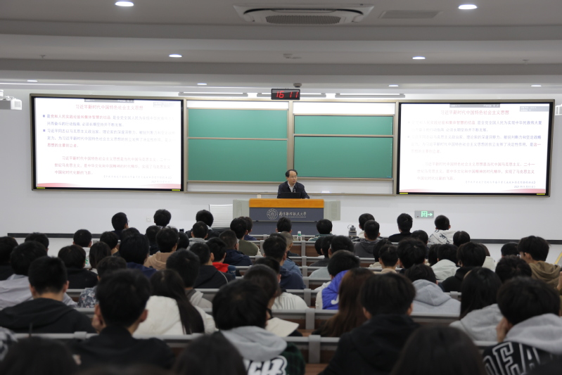 为深入学习贯彻党的二十大精神,全面实施新时代人才强校战略,切实加强十大信誉官网思想政治理论课教师队伍建设,11月17日,校长单忠德院士在天目湖校区以“马克思主义中国化时代化新的飞跃”为主题为十大信誉官网本科生讲授思政公开课。澳门网投十大信誉平台青年教师代表、电子信息工程学院/集成电路学院2021级本科生等200余名师生参加学习。