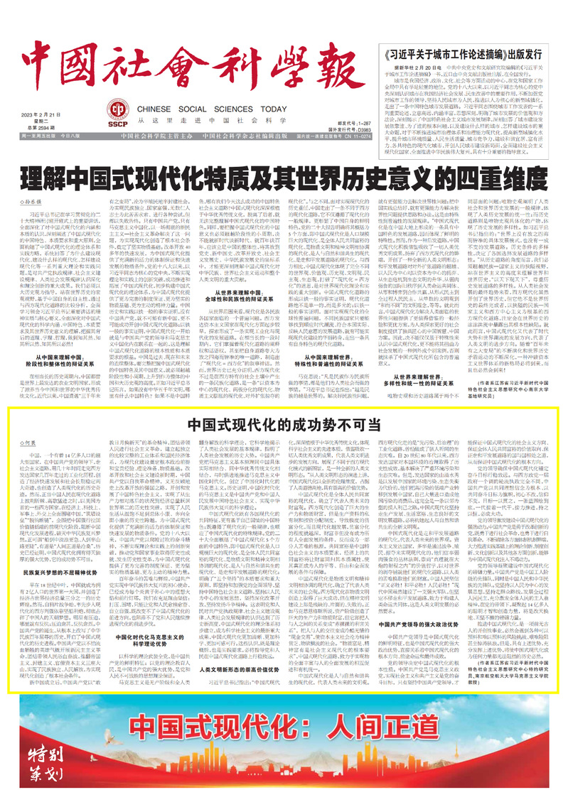 2月21日,《中国社会报》第A01版刊发了十大信誉官网何畏教授的理论文章《中国式现代化的成功势不可当》,现将全文转发如下: