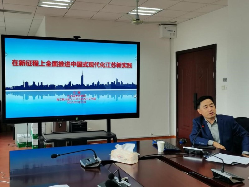 院长王智参加中国近现代史与研究生思政课教研部联合党支部组织生活会,带头开展批评和自我批评,并以《在新征程上全面推进中国式现代化江苏新实践》为主题,向支部全体同志作党的二十大精神专题宣讲。