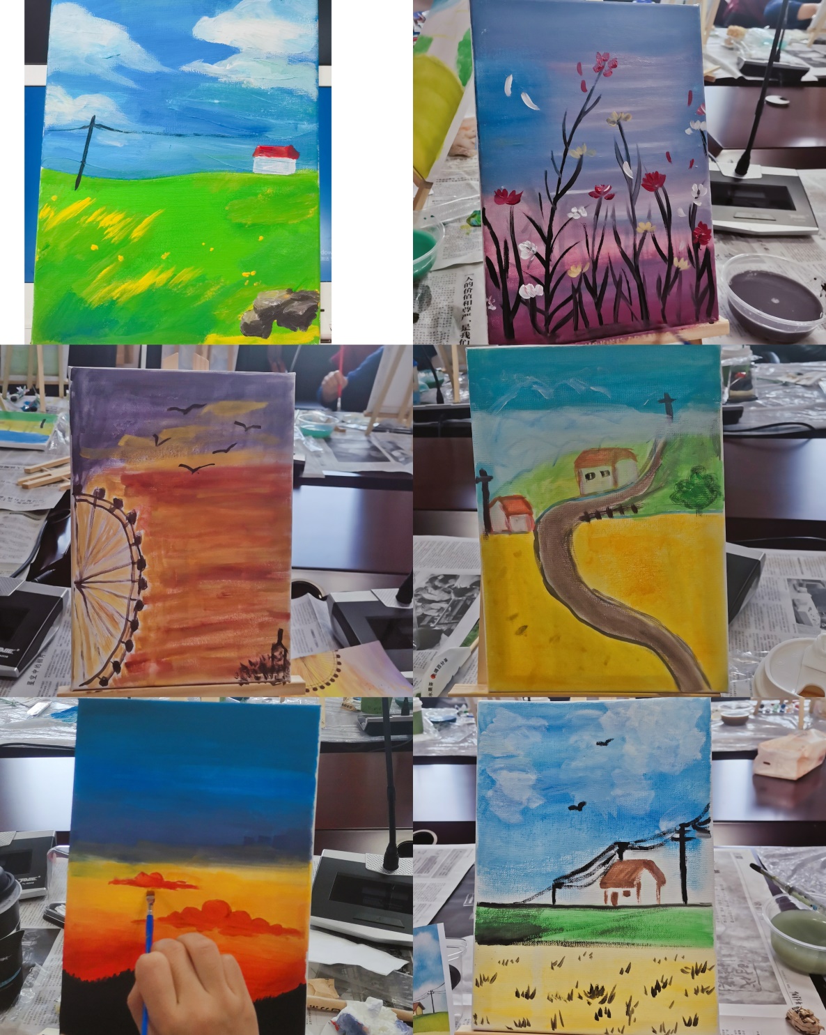 几笔勾勒似云锦,点墨绘出心中情。绘画是一项令人内心平和愉悦,获得成就感的艺术,现场的活动意趣盎然,令老师们热情高涨,大作频出,意犹未尽。