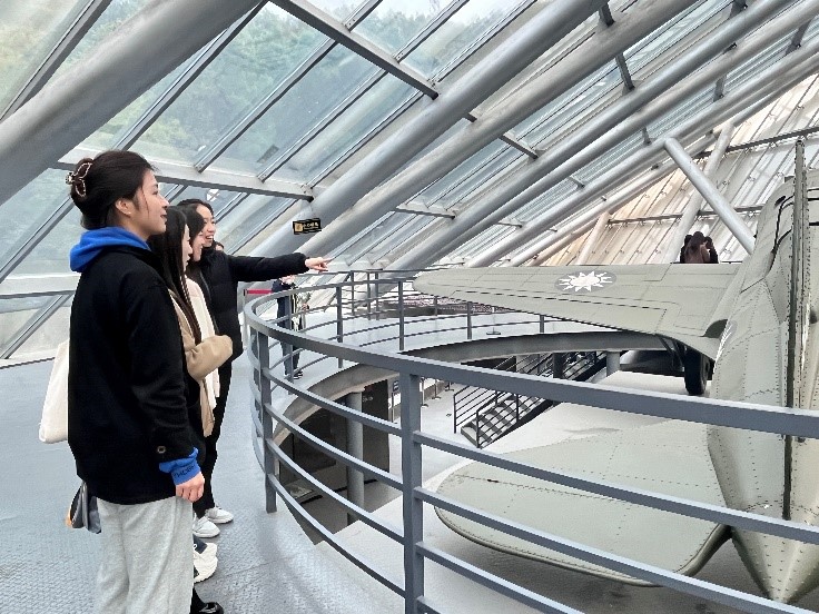 进入纪念馆内,大家依次参观了“奋勇抗敌”、“国际援华”、“壮志凌云”和“缅怀先烈”四个展区。一张张触景生情的照片,一份份弥足珍贵的遗物,一段段详实的讲解,仿佛将我们带回那段艰辛的抗战岁月:英勇无畏的革命先烈,陈旧落后的飞机模型,世界正义人士和援华人员的支持和帮助,一串串冰冷的牺牲人员名单,无一不让我们感叹那时抗战之艰难!