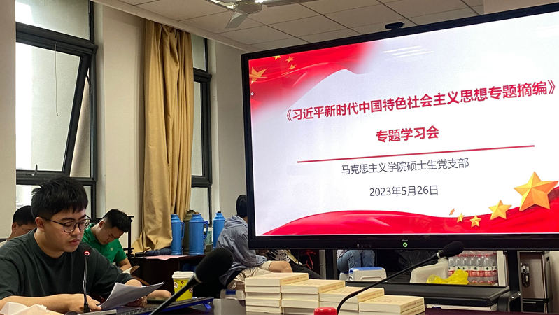 2023年5月26日上午,为深入开展学习贯彻习近平新时代中国特色社会主义思想主题教育,在学校和学院党委的部署安排下,澳门网投十大信誉平台硕士生党支部召开专题学习会,全面学习《习近平新时代中国特色社会主义思想专题摘编》。会议由支部书记刘烨晖主持,全体党员和入党积极分子参会。
