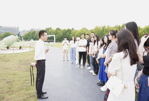 11时许,众人又前往南航御风园进行学习参观,22级硕士研究生、马院“星火燎原”宣讲团成员王若琳担任讲解,为大家细致讲解所陈列的每架飞机的背后故事和南航身影。