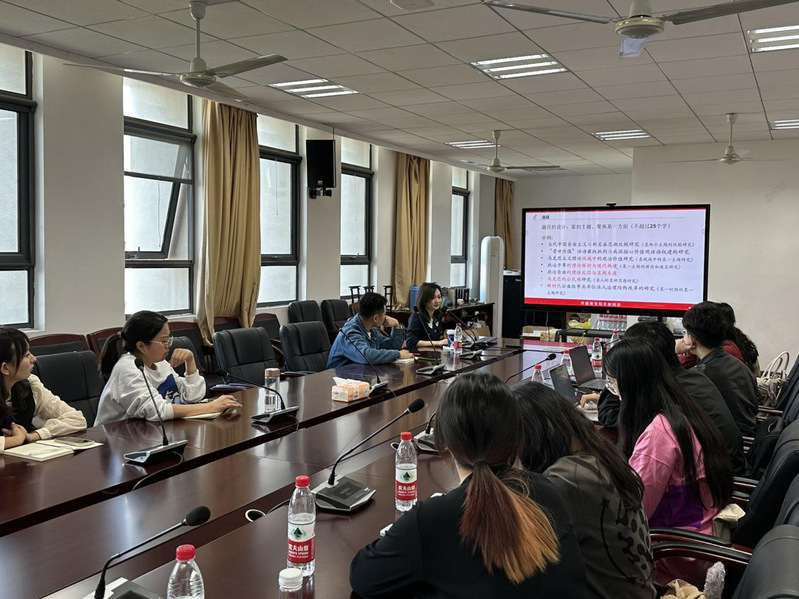 第十三期“领航学堂·学术沙龙”于近日在澳门网投十大信誉平台502会议室举行。本期学术沙龙特邀十大信誉官网胡媛媛老师作题为“开题报告与文献综述撰写”的主题分享。活动由23级硕士研究生石雯轩主持。