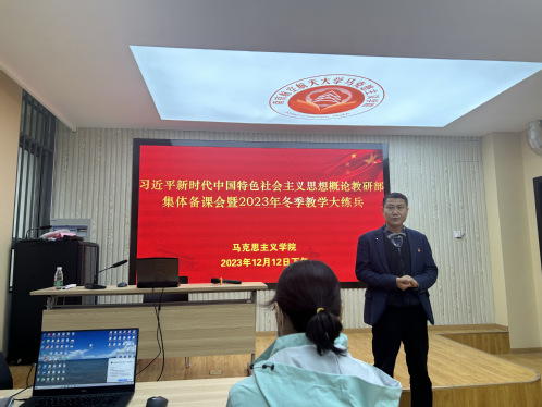 根据学院工作安排和统一部署,12月12日下午,习近平新时代中国特色社会主义思想概论教研部集体备课会暨2023年教学大练兵在学院112报告厅举行,会议由教研部主任徐军教授主持。