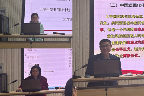 活动的第二环节由3位教师进行8分钟教学展示:靳晓霞教授根据“发展全过程人民民主”的教学内容,以层层递进地方式讲述了全过程人民民主的基本逻辑线索;张静副教授对“以保障和改善民生为重点加强社会建设”作说课分享,以与大学生生活最贴近的“实施就业优先战略”为切入点,讨论了结构性就业矛盾凸显的问题;徐军梳理并分析了“深刻理解中国式现代化的中国特色、本质要求和重大原则”等中国式现代化的相关重大问题。