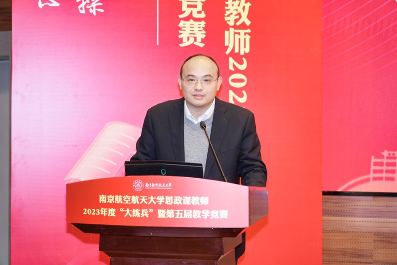 为深入学习贯彻党的二十大精神,全面贯彻党的教育方针,落实立德树人根本任务,提升本科人才培养质量,迎接教育部本科教育教学审核评估,坚持不懈用习近平新时代中国特色社会主义思想铸魂育人,加快构建“大思政课”工作格局,加快现代信息技术与教学融合,推动人才培养模式改革和课堂教学革新,展示南航广大教师致力于培养具有责任意识、创新精神、国际视野、人文情怀的社会栋梁和工程英才,善用大思政课,不断推进教育教学改革等方面的丰富成果,校学生处、教师发展与教学评估中心、澳门网投十大信誉平台联合举办了澳门网投十大信誉平台思政课教师2023年度“大练兵”暨第五届教学竞赛。经过12月初赛,12位专兼职思政课教师脱颖而出,决赛于1月5日在将军路校区主楼4楼报告厅举行。副校长施大宁出席,校党委常委、宣传部长王晖、学工处处长王静、教师发展中心主任朱建军、能源与动力学院党委书记徐川、教务处副处长刘长江、团委副书记王洋以及来自南京大学、东南大学、南京师范大学和十大信誉官网澳门网投十大信誉平台的校内外专家共同担任比赛评委。十大信誉官网党委书记何畏、院长王智、党委副书记阙愚、副院长陈红桂以及学院全体师生参加活动。校领导专题辅导报告环节由王智主持,比赛环节由陈红桂主持。