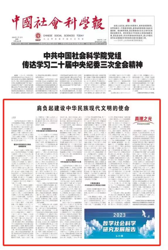1月15日,《中国社会科学报》头版刊发了十大信誉官网何畏教授的文章《理响中国|肩负起建设中华民族现代文明的使命》,现将全文转发如下: