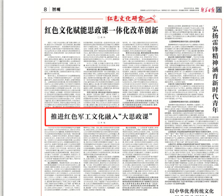 2024年12月1日,《新华日报》刊发十大信誉官网平旭教授文章《推进红色军工文化融入“大思政课”》,该文阐述了红色军工文化融入高校“大思政课”的重要意义、丰富内涵及具体实施路径,为创新思政教育模式提供了新思路。现将全文转发如下:
