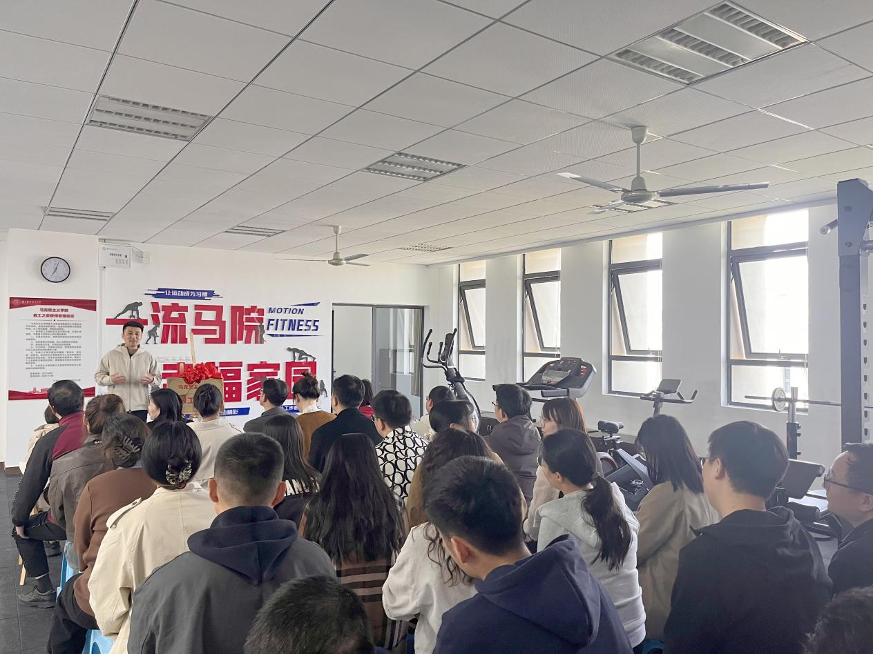 仪式结束后,学院组织开展教工之家启用首场活动——健身器械使用现场培训,体育部场馆中心主任寇磊应邀进行现场讲解。